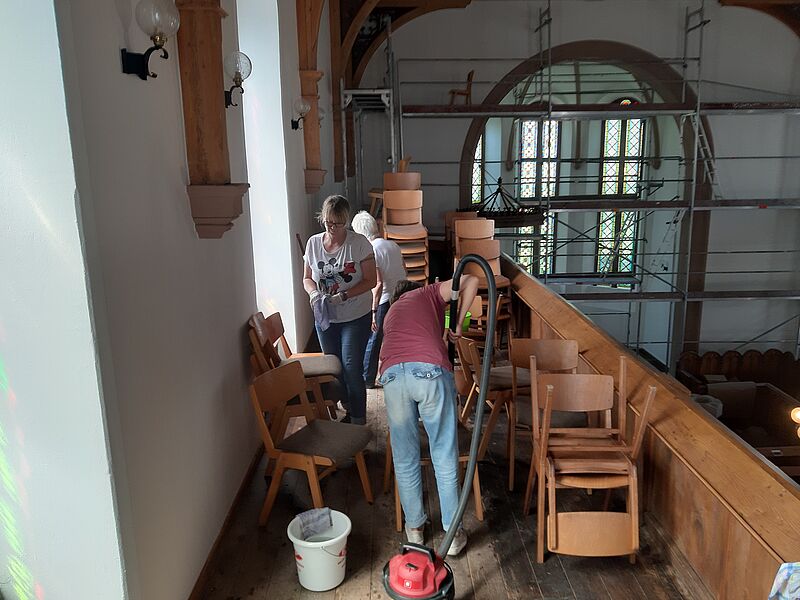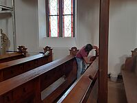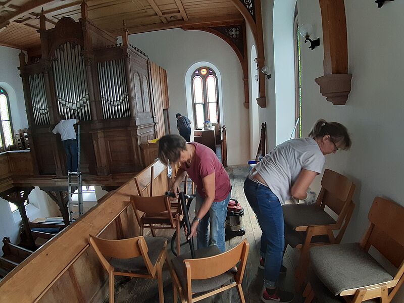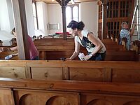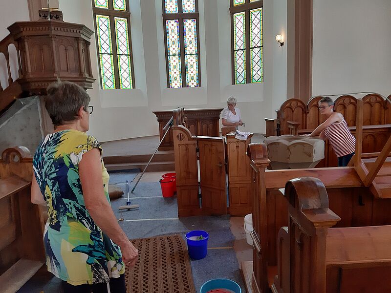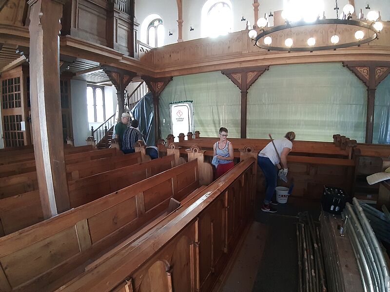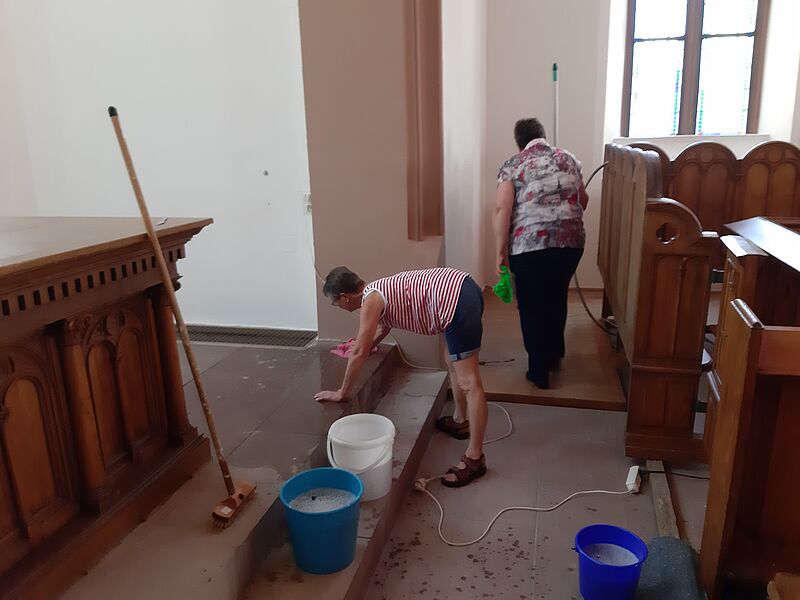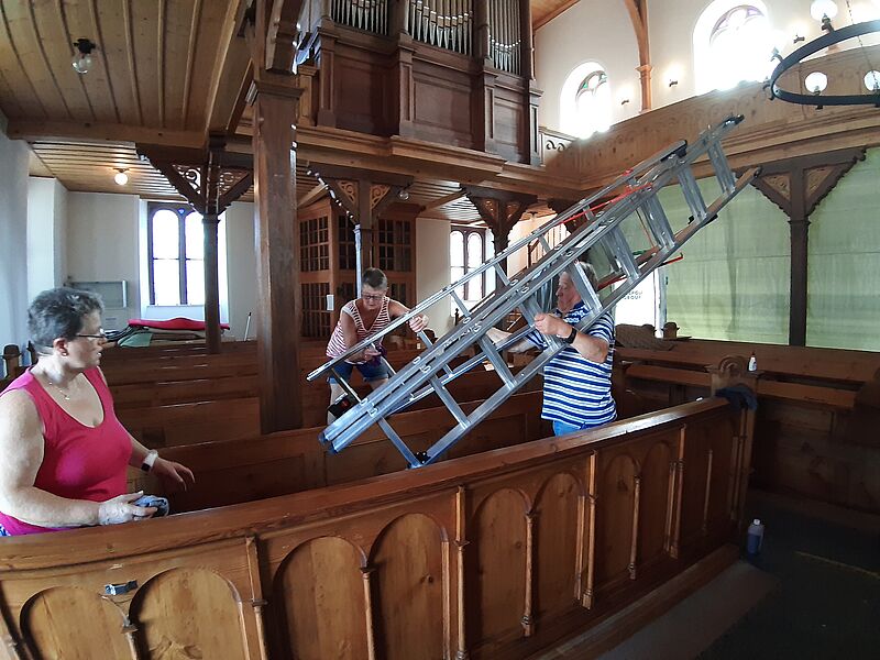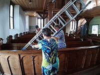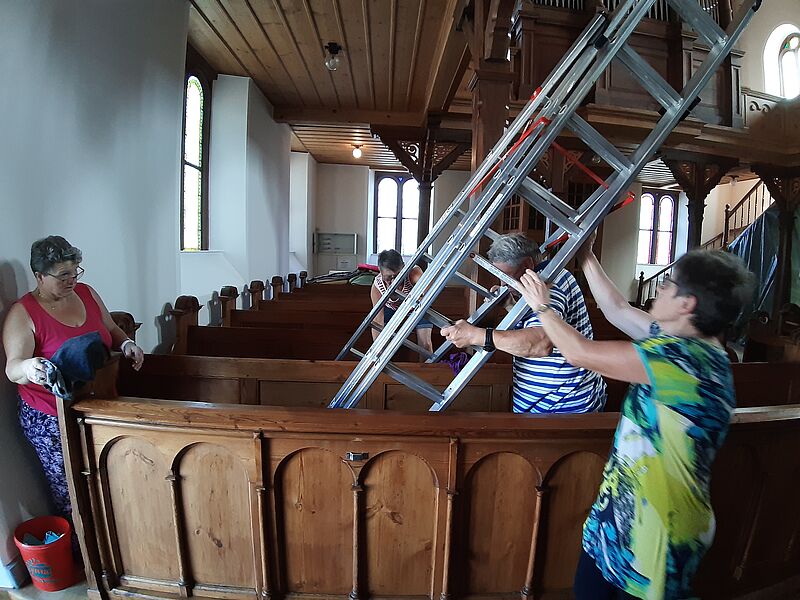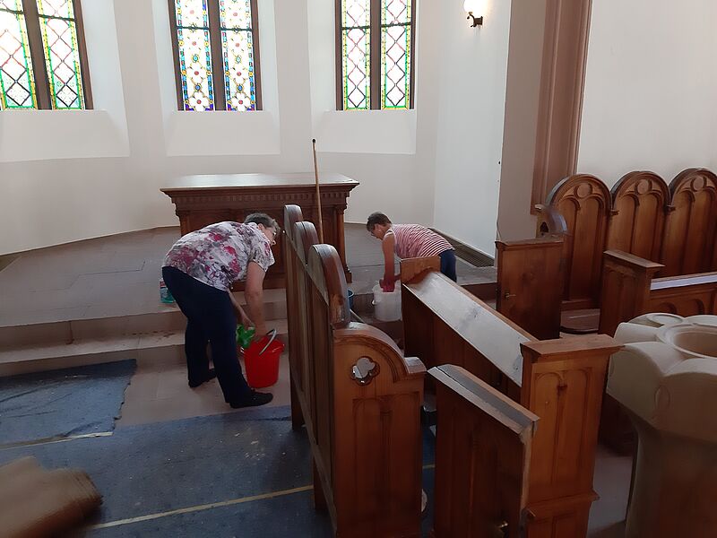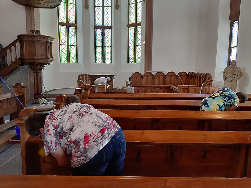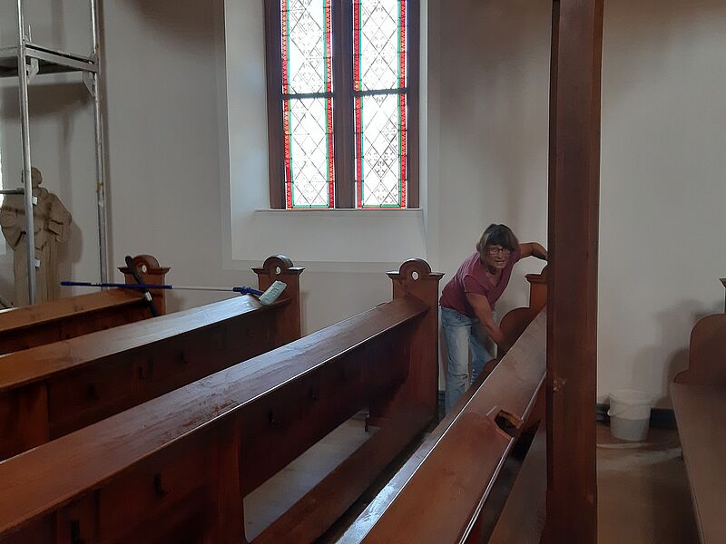 Großputz in der Kirche in St.Julian nach der Sanierung im Sommer 2019