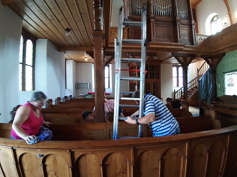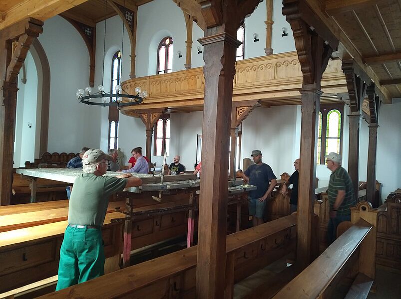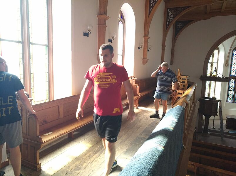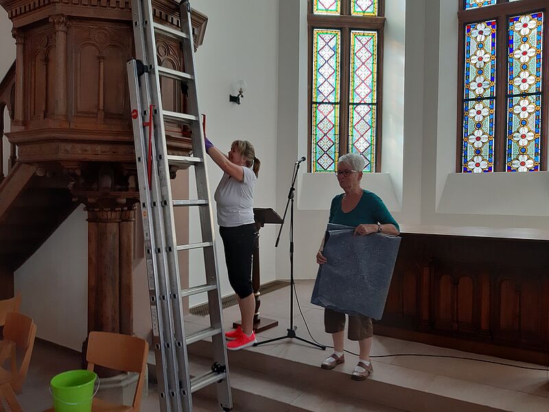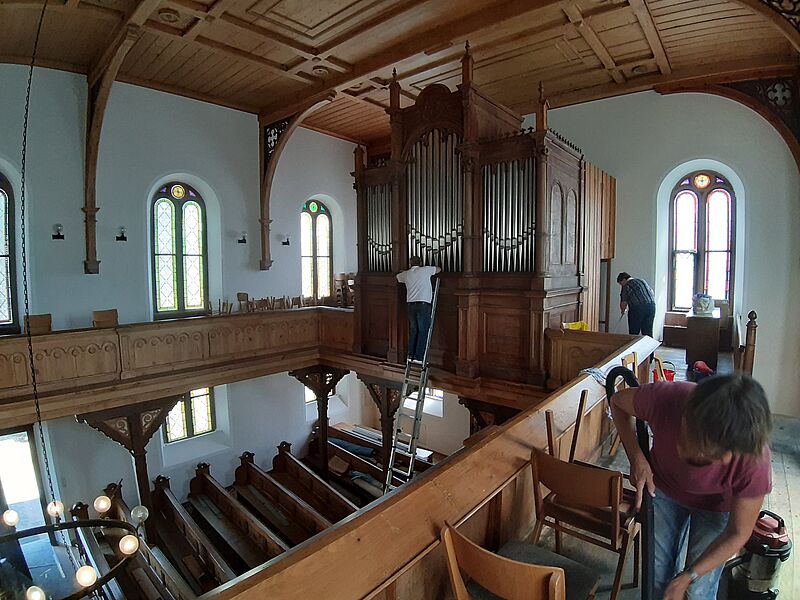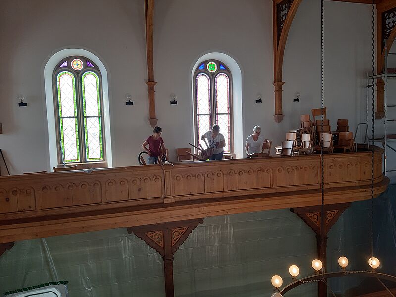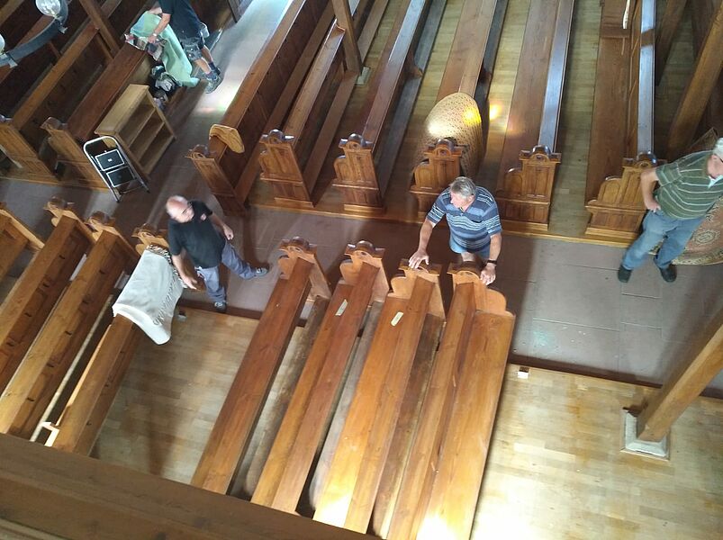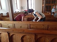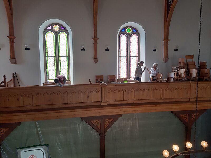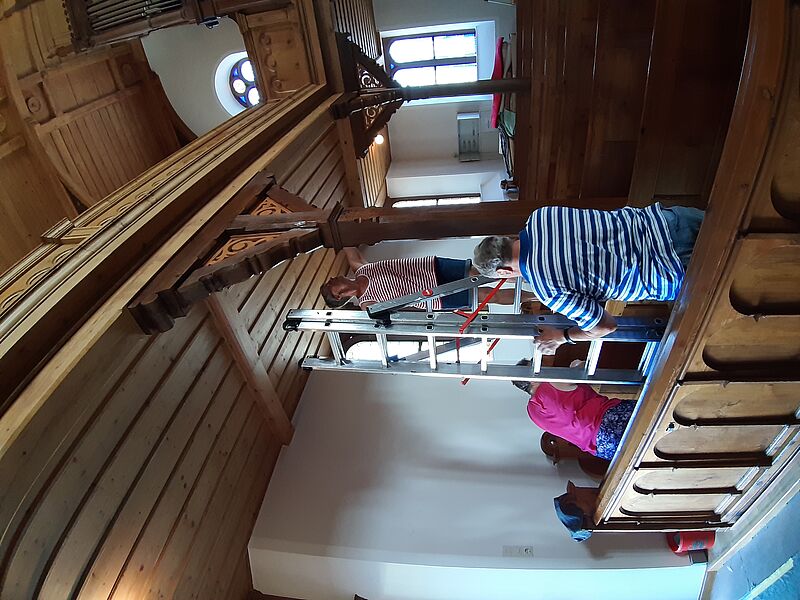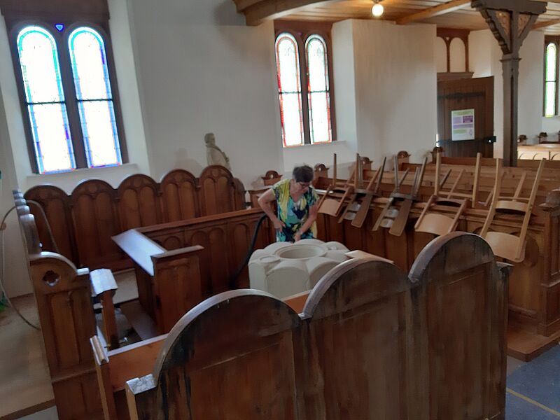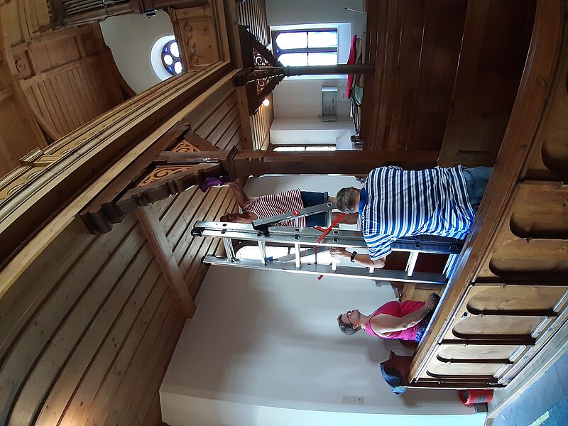 Großputz in der Kirche in St.Julian nach der Sanierung im Sommer 2019