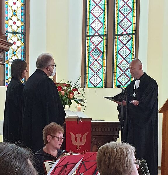 An Pfingstmontag 2022 wurde das Pfarrerehepaar Freya und Johannes Hülser durch Dekan Lars Stetzenbach in ihren Dienst eingeführt. Den sehr gut besuchten Gottesdienst in der Prot. Kirche St. Julian gestalteten musikalisch das Mandolinenorchester aus Gumbsweiler und Organistin Katja Abel sowie liturgisch die Presbyterinnen und Presbyter der Kirchengemeinde, die im Anschluss auch zu einem kleinen Empfang bei Sonnenschein auf dem Kirchhof einluden.
